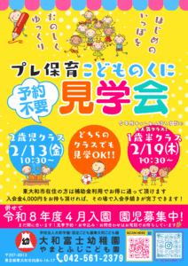 大和富士幼稚園のプレ保育「こどものくに」の見学会を行います!